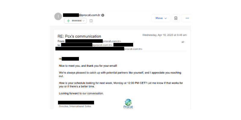 Result: Immediate interest from International Sales Director, rapid meeting scheduling